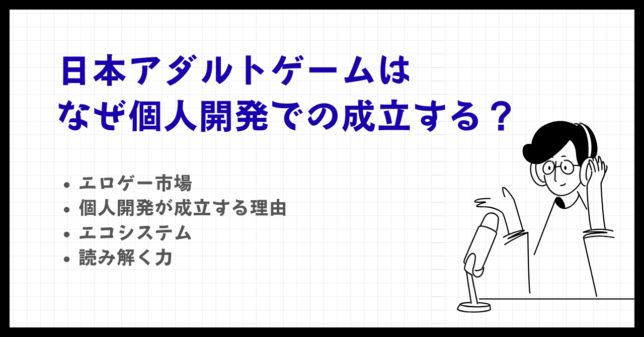 世界中にアダルトコンテンツは存在しますが、日本のように個人開発者が市場の中心的な担い手となるエコシステムは極めて稀です。